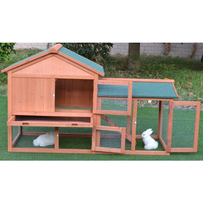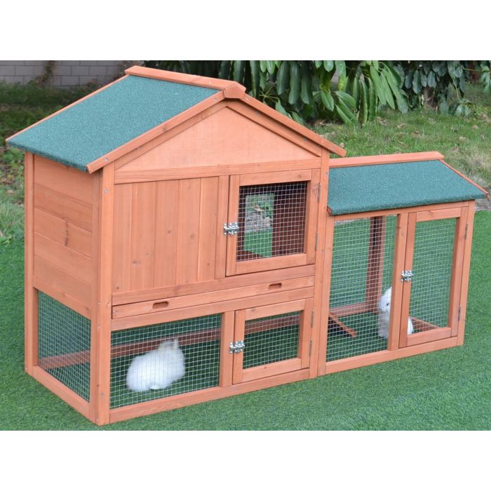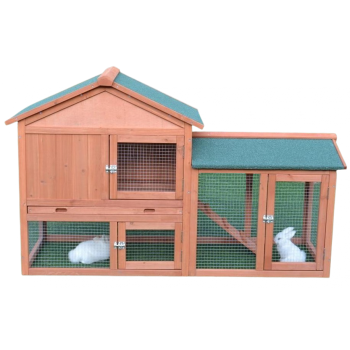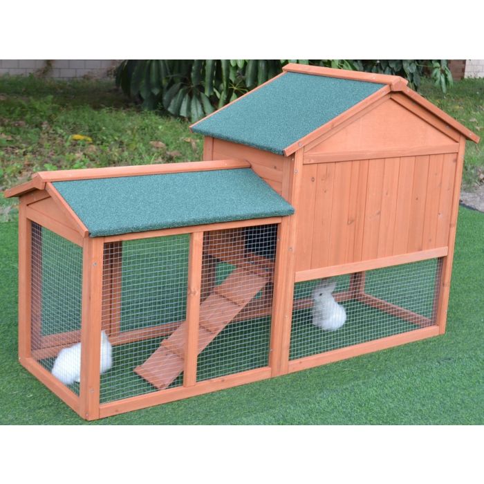 – Ruim houten konijnenhok met buitenren en overdekt nachthok