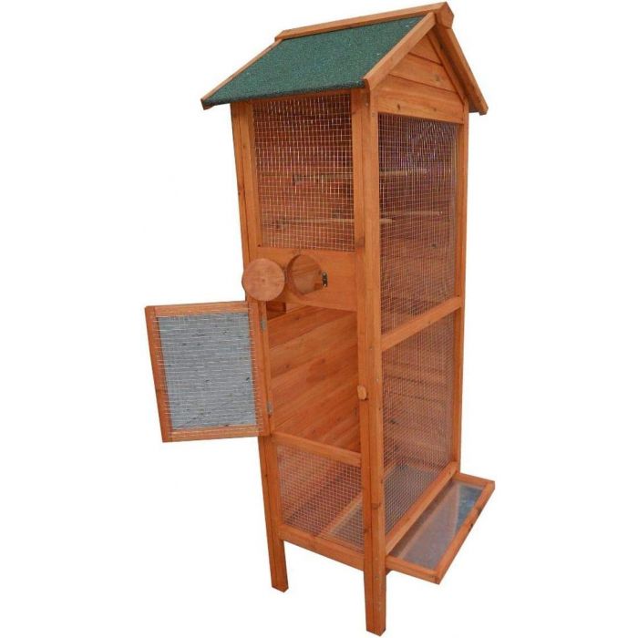 – Ruime houten volière voor kleine tot middelgrote binnenvogels